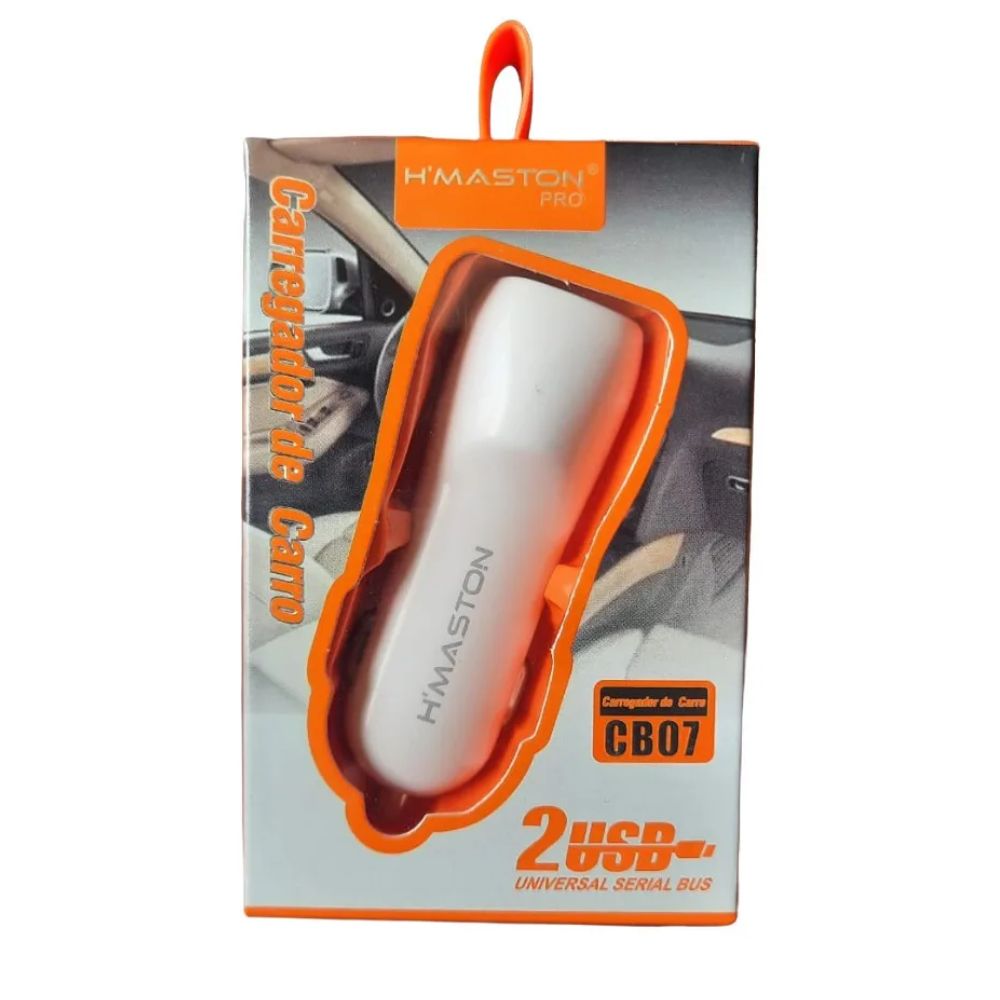 O carregador veicular CB07 da H’Maston conta com duas saídas USB e alta potência de carregamento, ele efetua a recarga super rápida de até dois dispositivos ao mesmo tempo, detecta automaticamente o aparelho e otimiza a energia adequada.